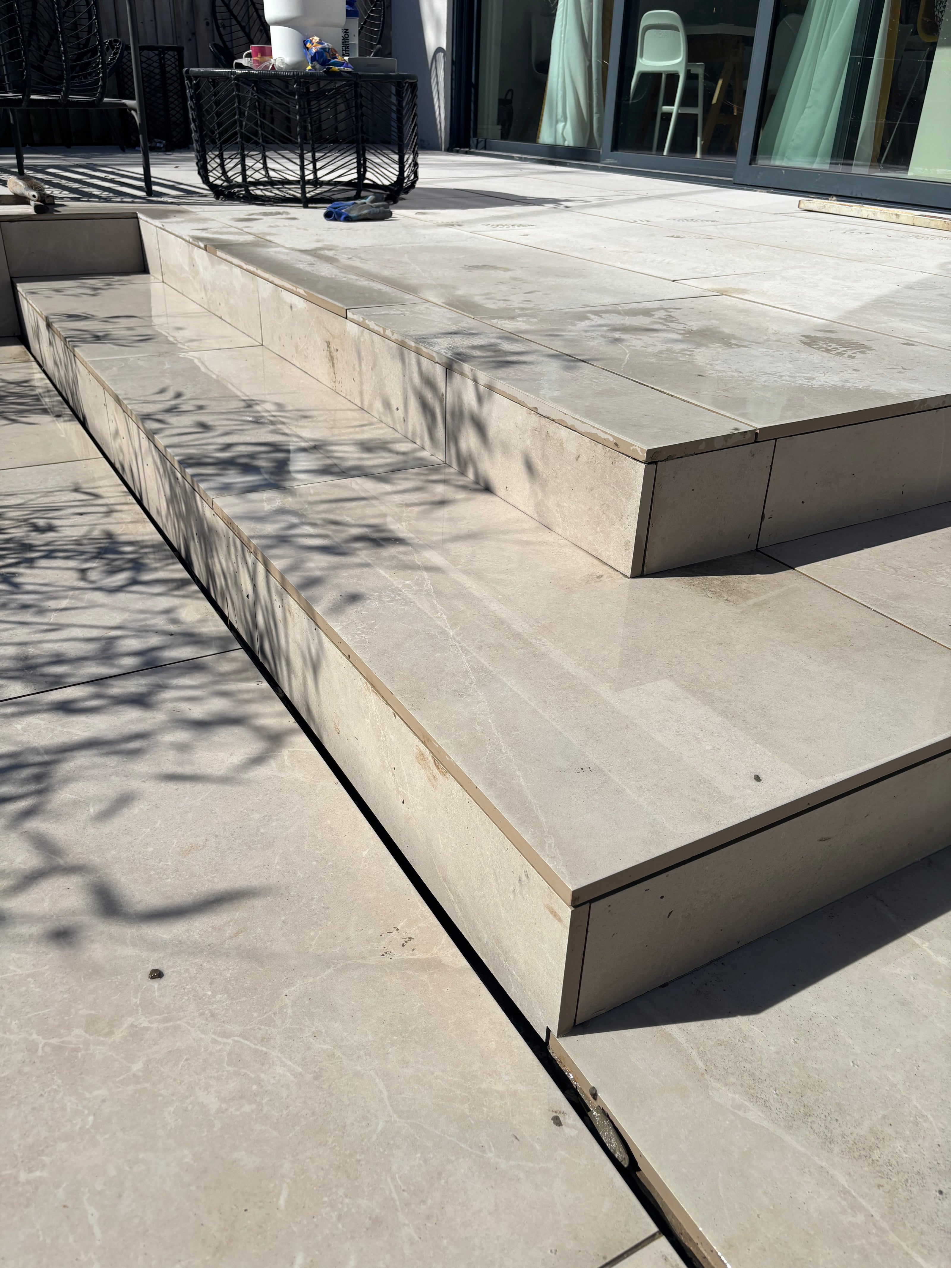 The porcelain slabs were laid on a C35 reinforced concrete base, providing exceptional structural strength. An external-grade tile adhesive was used to bond the slabs securely, delivering excellent weather resistance, durability, and long-term performance in all conditions.